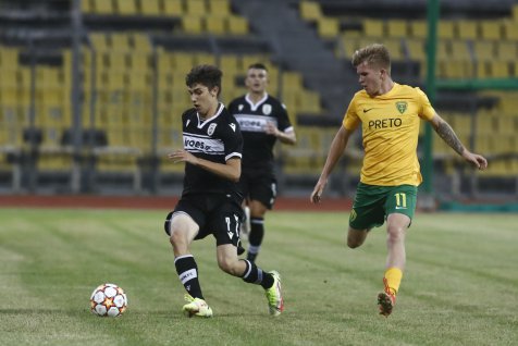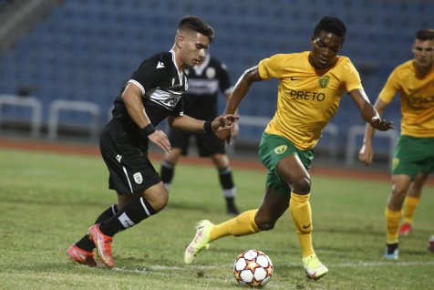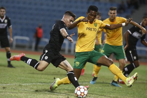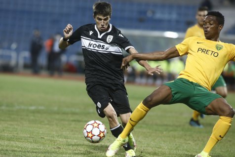 Neubehla ani minúta riadneho hracieho času a po stopercentnej šanci Adriána Kaprálika sme mohli viesť. Po nákope za obranu unikol Kapo obrancom PAOKu, po zaseknutí brankára trafil iba bočnú sieť. Vynahradil si to ale v ďalšom priebehu. Čo sa nepodarilo nám, podarilo sa domácim, prienik do šestnástky a zakončenie ešte Belko vyboxoval, ale na dorážku útočníka Pereiru De Sousu už nemal nárok. V 12. minúte sme už mohli prehrávať dvojgólovým rozdielom, rovnaký hráč tentokrát však, na naše šťastie, zahodil svoju príležitosť spred prázdnej brány. Zahrozili sme aj my, Mário Sauer vysunul rýchleho Kaprálika, ktorého center na Tima Jambora odvrátil posledný možný obranca. Po následnom rohu a vrátení lopty do ohňa zase takmer skóroval Patrik Leitner. Ďalšiu príležitosť zo série vyložených zahodil domáci v 26. minúte, a trestali sme preto konečne my. Dlhú loptu predĺžil hlavou Timo Jambor, ktorý našiel štartujúceho Kaprálika, ten sa pretlačil v súboji jeden proti jednému a okolo brankára po zemi vyrovnal - 1:1. Tento moment nám vlial sebavedomia a ukázal sa prakticky ako zlomový. V 33. minúte sa pre strelu spoza vápna odhodlal Timo Jambor, priestor brány avšak netrafil. Hluchšiu pasáž bez väčších šancí a takmer už aj polčasový hvizd narušila 45. minúta a Mário Sauer. Zblokovaná strela Kaprálika z hranice pokutového územia skončila na žrdi, kde sa ale najlepšie zorientoval Sauer a hlavičkou nezaváhal pred prázdnou bránou - 1:2.