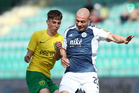 V nedeľnej dohrávke 6. nadstavbového kola sme sa už po 144. krát v histórii stretli s bratislavským Slovanom s úmyslom tretíkrát v rade zdolať belasých. Plány nám však naštrbili v prvom dejstve dva gólové úniky hostí, ktoré umlčali návštevu sezóny. To nás ale nepoložilo, ešte do prestávky znížil Jambor a po zmene strán si náš hroťák pripravil pre aj vyrovnanie v podobe gólovej bomby. Vtedy však zapli efektívni hostia a po dvoch chybách odskočili znova na rozdiel dvoch gólov. Žlto-zeleným sa tak nepodarilo zdolať Slovan tretíkrát v rade.