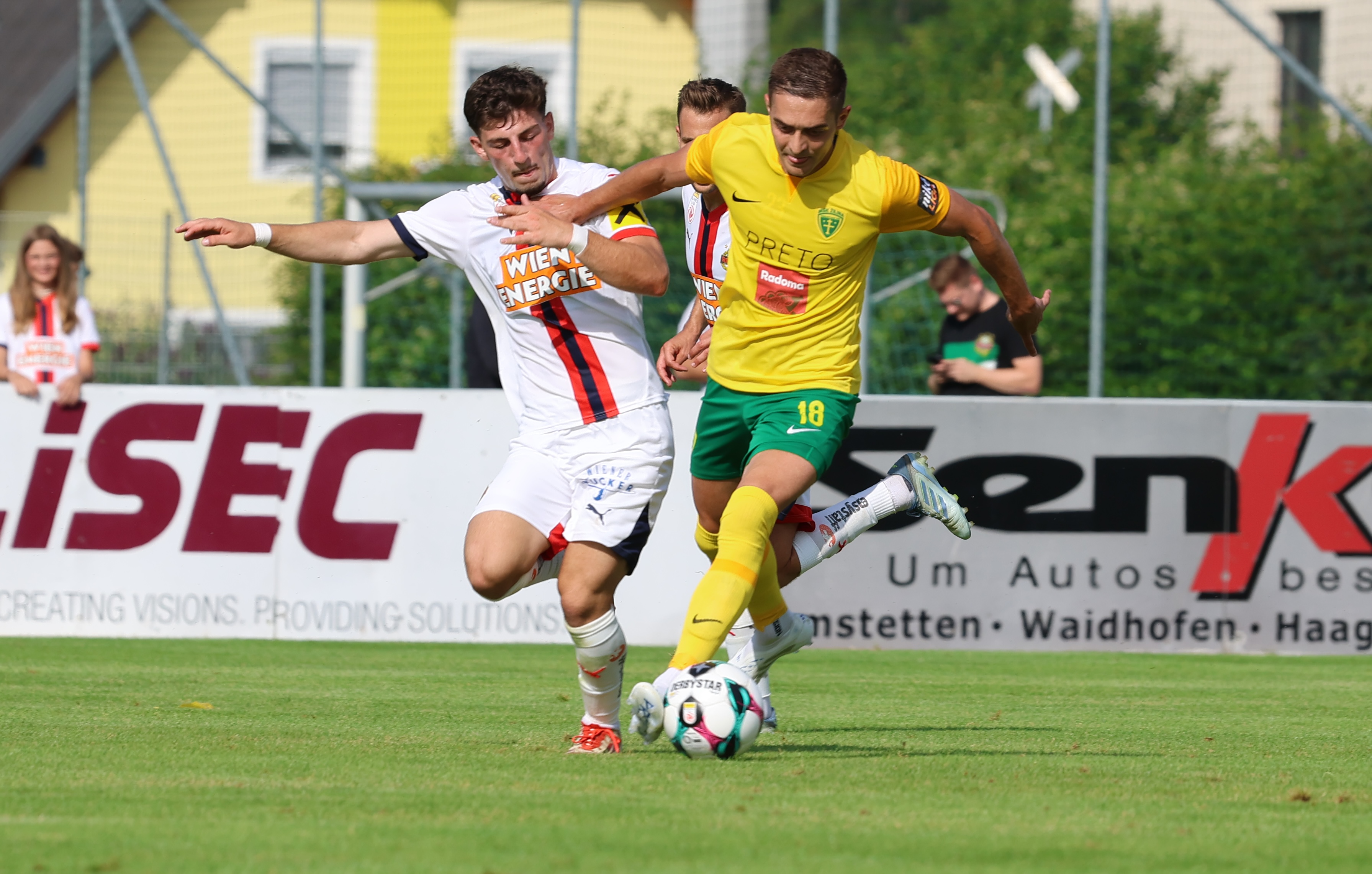 Ožili sme a po ďalšom brejku siahal na druhý gól MŠK Lukáš Prokop, jeho strele chýbal azda meter. Ešte bližšie mal k nemu po dobrej robote Dramého a po nájazde z uhla Samo Ďatko, žiaľ, opäť mu bol priestor brány malý. Prišli tak dva presné zásahy Rakúšanov v rozmedzí troch minút. Najskôr to v akrobatickej pozícii trafil nechytateľne pod brvno Seydi a po laxnom bránení v pokutovom území zvýšil už na 5:1 Weixelbraun. Týmito gólmi nás súper otupil, Pališčákovej hlavičke chýbala razancia, na druhej strane pomohla Badžgoňovi tyč po priamom kope Živkovića. Žltozelení sa predsa len tešili z druhého gólu, po priťuknutí Kóšu to nechytateľne trafil Samo Ďatko. Tretíkrát sme sa mohli tešiť po prieniku Kóšu a strele Prokopa, tentoraz podržala brankára Rapidu obrana pred ním, ktorá strelu zblokovala. Sedem gólov a rezultát 5:2 bol tak napokon konečným.