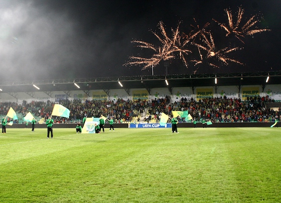 - 2008/2009 – pri oslavách storočnice klubu sme sa prebojovali premiérovo do skupinovej fázy druhej najcennejšej súťaže starého kontinentu – Pohára UEFA, kde sme v skupine F hrali proti Hamburgeru SV, Ajaxu Amsterdam, Slavii Praha a Aston Ville. Pamätné ostalo najmä víťazstvo na Britských ostrovoch, kde sme vyhrali vôbec ako prvý slovenský zástupca. Nižšie na fotografii víťazný gól Petra Štyvara vo Villa Parku a ohňostroj pri oslave 100 rokov klubu.