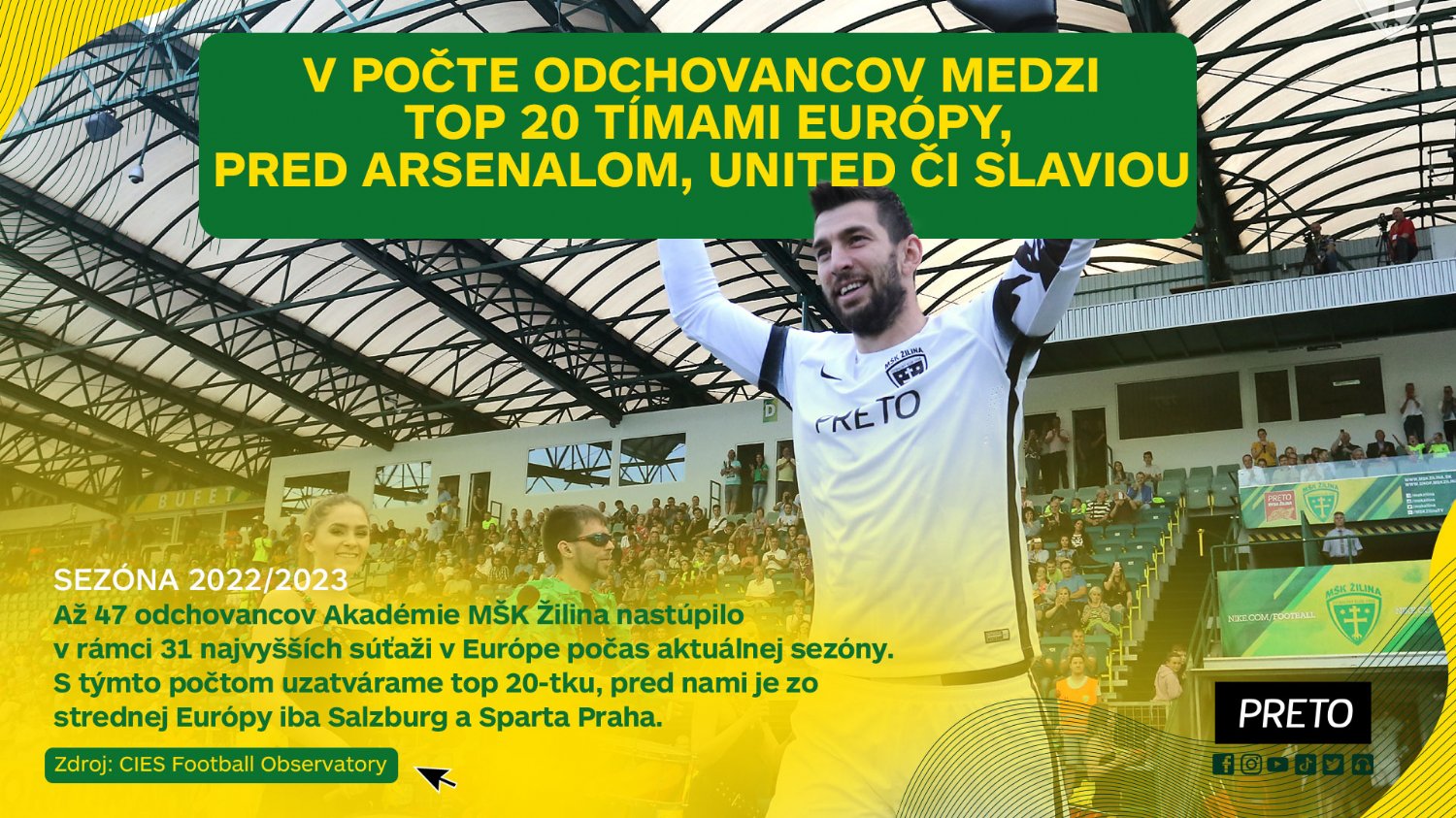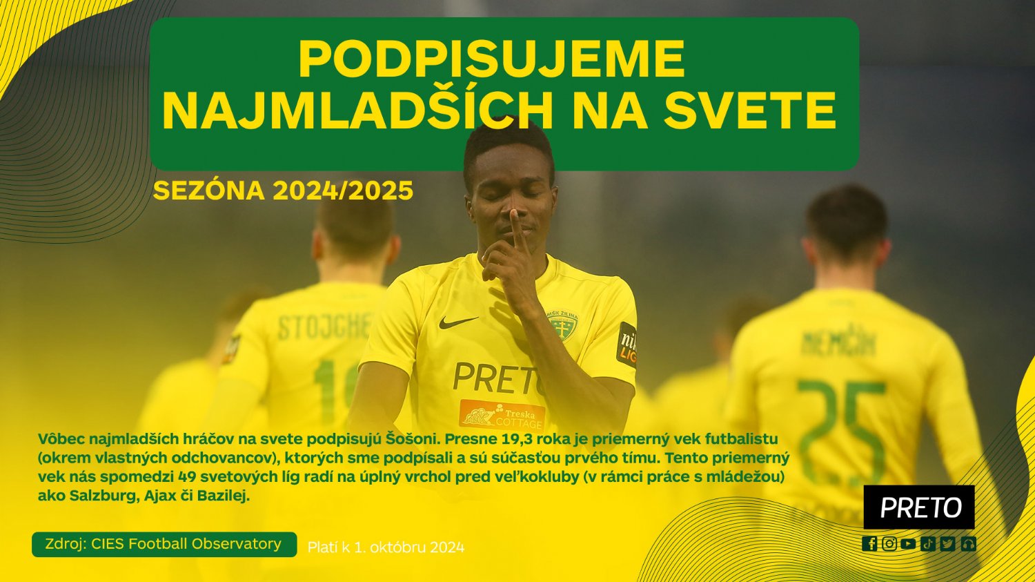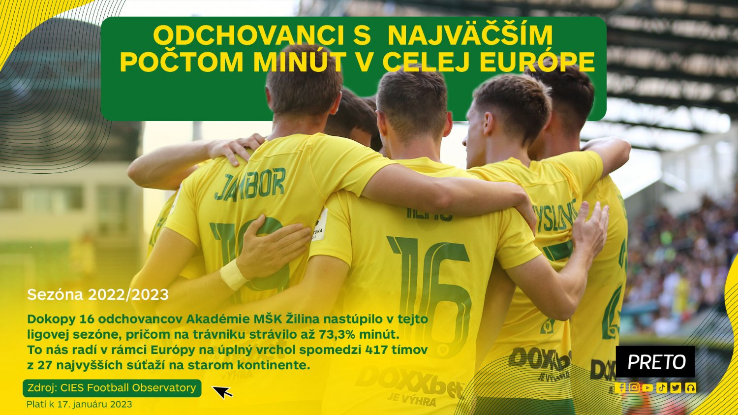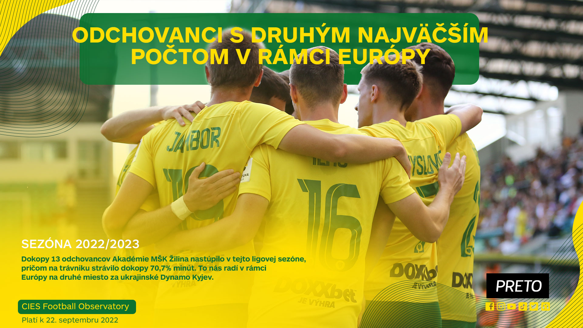 ooni svojou jedinečnou filozofiou a prepracovanou koncepciou s mladými hráčmi a odchovancami patria k pičke nielen na Slovensku, ale aj vo svete. Odtartovali sme to jedinečným Zápasom odchovancov. Následne celosvetovo uznávaná výskumná skupina z Medzinárodného strediska pre portové túdie (CIES) zo vajčiarska začala pravidelne vydáva rôzne tatistické ukazovatele, kde sa čoraz viac objavujú práve ooni.