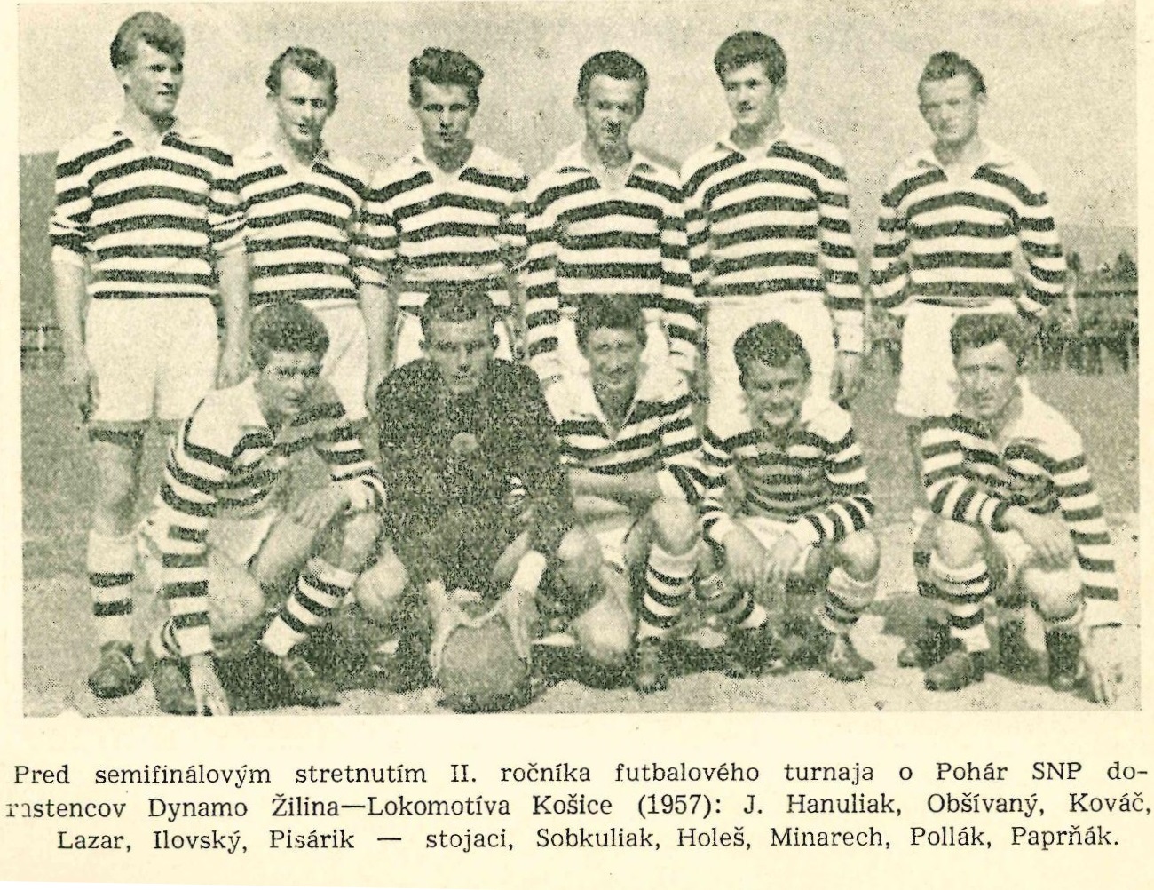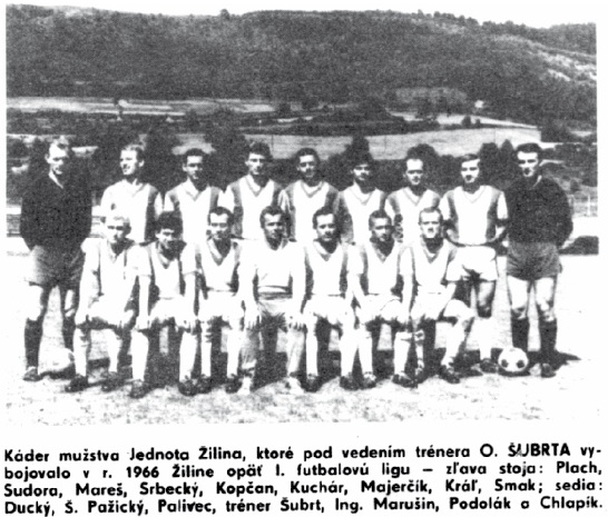Káder Sloveny Žilina v sezóne 1952: Belluš, Kosiba, Šterbák, Krásnohorský, Timkanič, Kopčan, Zvara, Barčík, Németh, Moravčík, Drexler, Šubrt, Kocík, Stalmašek, Blažko, Hradňanský, Ottinger, Šmárik,