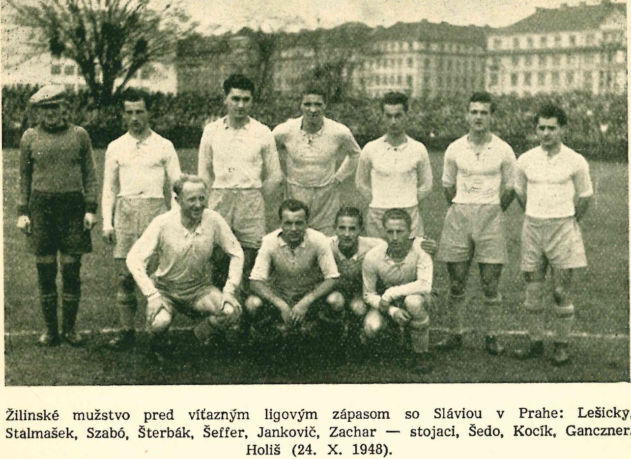 Káder ŠK Žilina v sezóne 1948: Lešický, Kružliak, Šterbák, Krásnohorský, Jankovič, Szabó, Šedo, Holiš, Zachar, Kocík, Šeffer, Bánovec, Ganczner, Stalmašek, Timkanič, Barčík, Cíha, Bielek, Meissner