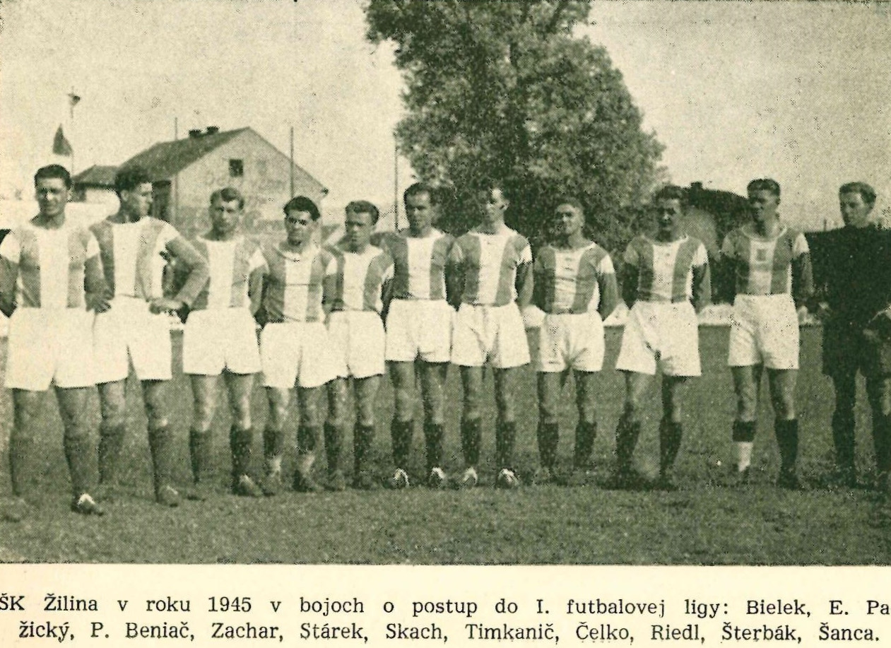 Premiérový ročník 1945/1946 štartuje domácou výhrou nad SK Slezská Ostrava 3:1. Prvý gól zaznamenáva kto iný než Vojtech Zachar, ktorý v 32. minúte otvára skóre zápasu pod Dubňom pred vyše päťtisícovou návštevou. V prvej sezóne doplatili Žilinčania na menej skúseností, no existenciu I. ligy v predstihu zachránili.