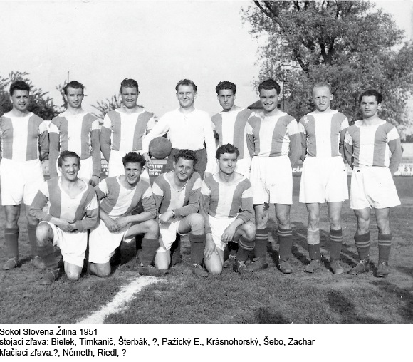 Káder Sloveny Žilina v sezóne 1951: Danko, Šterbák, Krásnohorský, Timkanič, Kopčan, Holiš, Moravčík, Németh, Šteigl, Šubrt, Zachar, Kocík, Urbanič, Rovňan, Stalmašek, Zvara, Barčík, Bánovec, Blažko